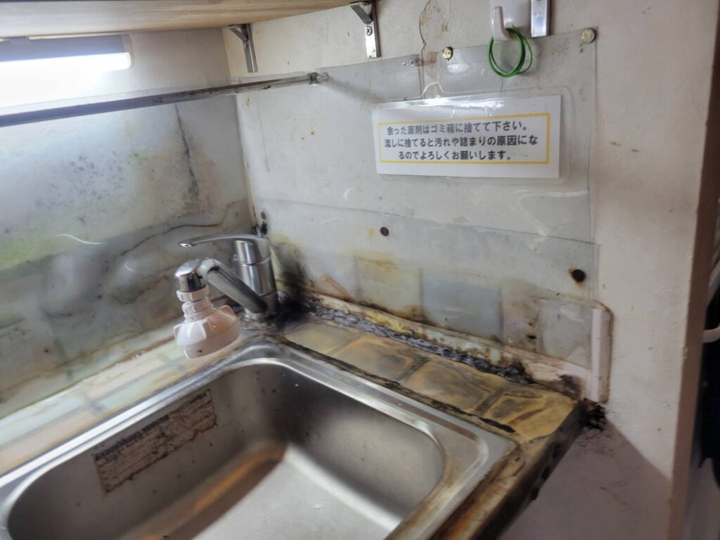 • 洗面台まわりの壁にヘア剤の汚れがこびりつき、見た目が悪くなってしまった